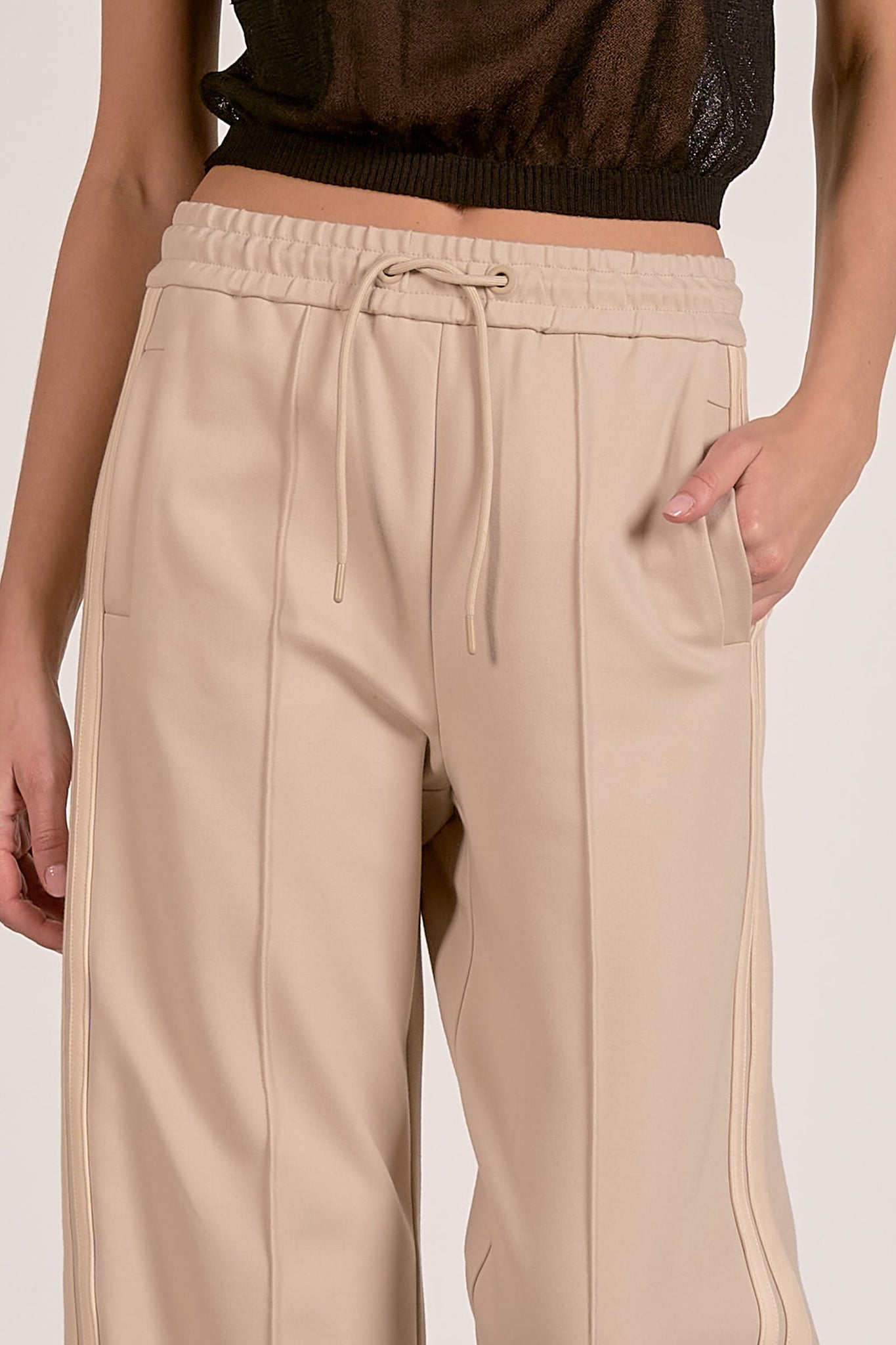 Track meets trend. The Scuba pant brings elevated ease to everyday styling with a polished yet sporty finish. Designed in a flattering wide-leg silhouette with contrast side stripes, this pull-on track pant blends comfort and confidence with every step. Style it with the matching Scottie jacket or a crisp poplin shirt for an off-duty edit with edge.