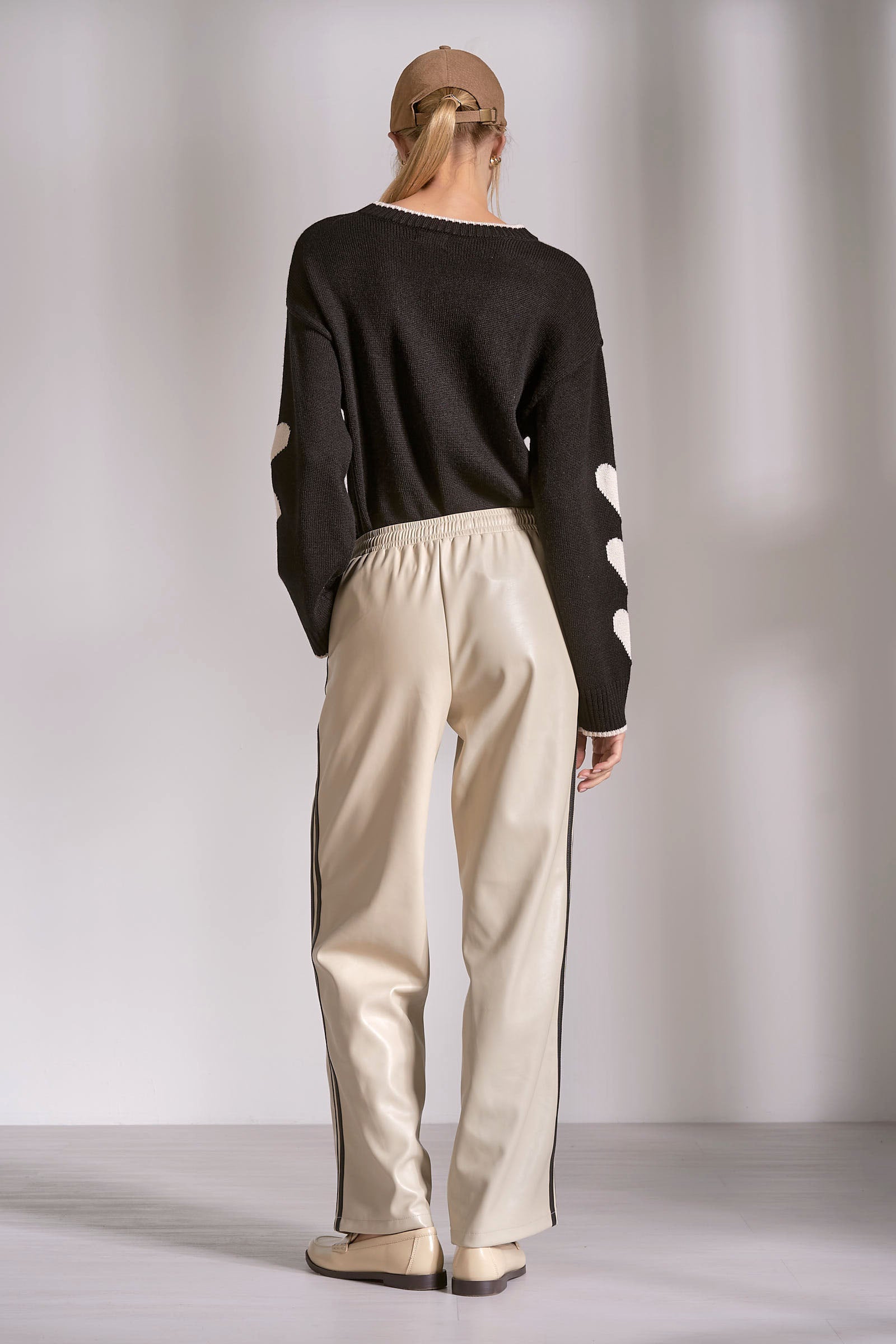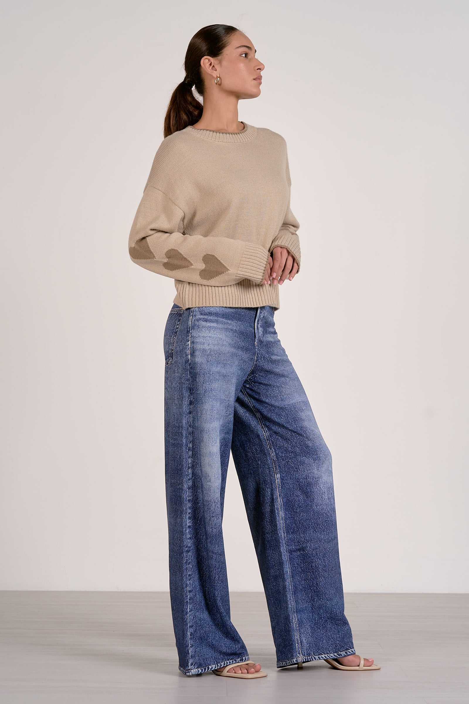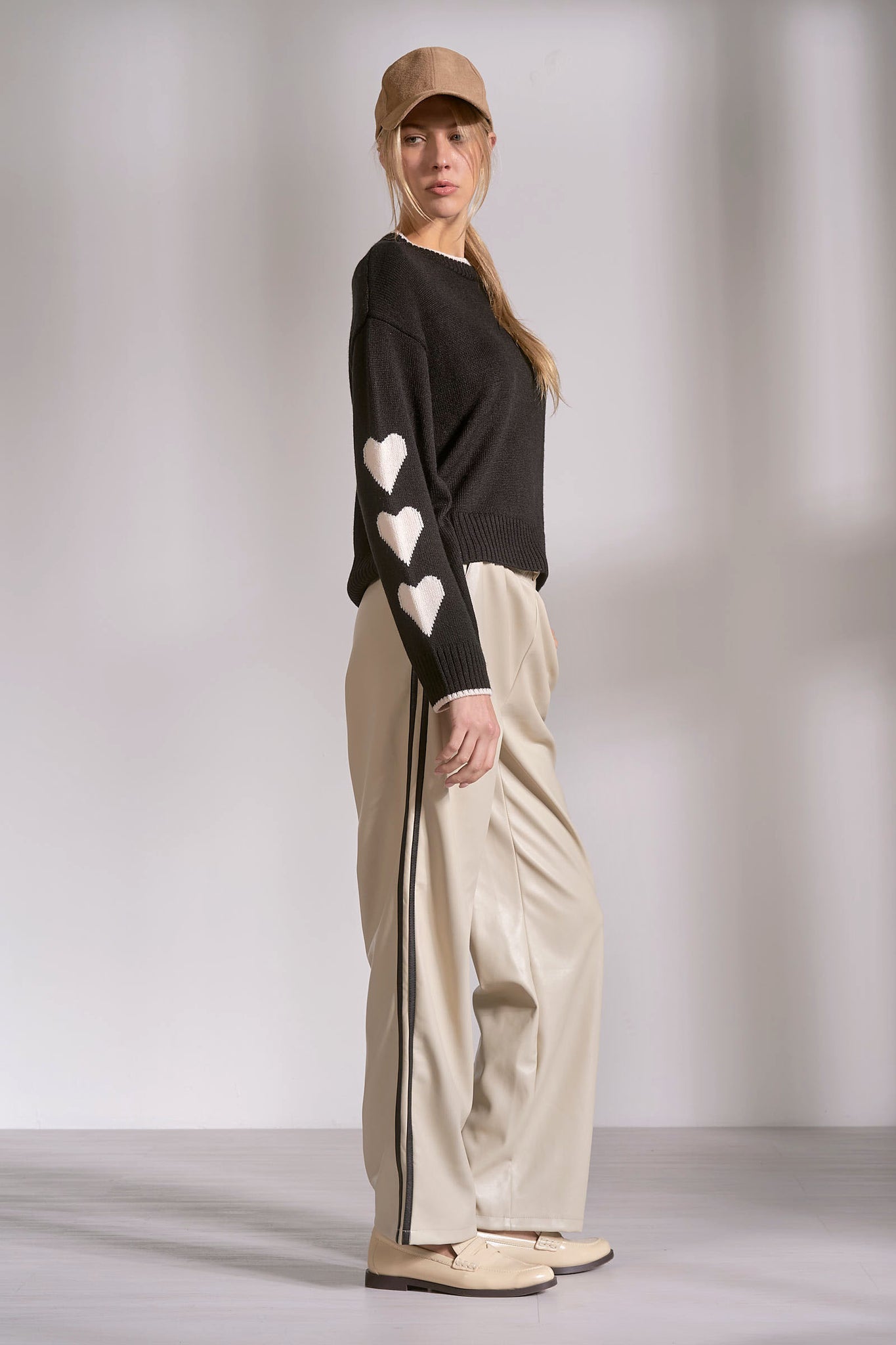 Fall in love with bold statements. The Hearts sweater features oversized heart motifs down each sleeve for a playful twist on cozy. Designed in a soft, medium-weight knit with a relaxed crew neckline and classic silhouette, this pullover pairs effortlessly with denim for an everyday look with heart.