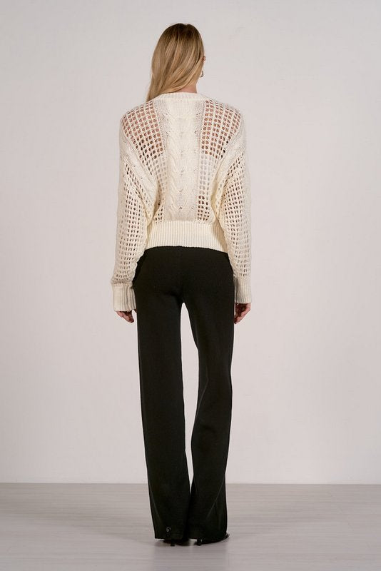 The Poppy sweater is your breathable knit essential — lightweight and open-stitch for easy layering. Featuring a relaxed crew neckline and dropped shoulders, this long-sleeve style is perfect for spring nights or brunch dates. Throw it over a bralette or tank for an undone yet elevated look.