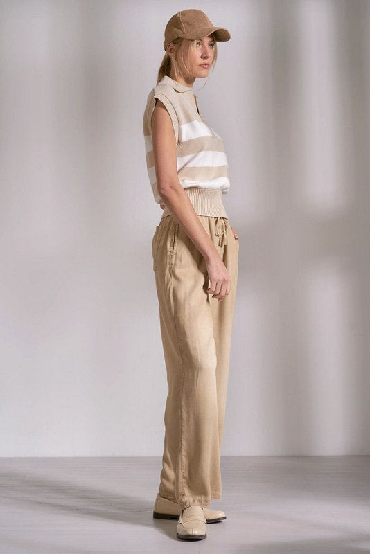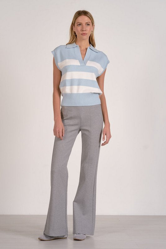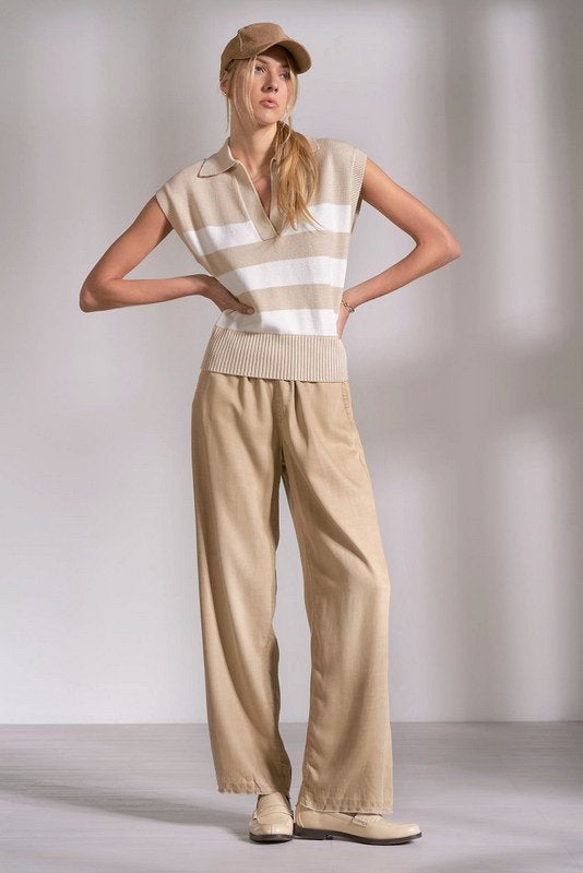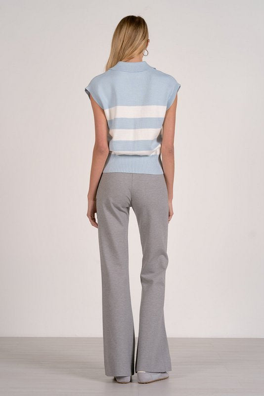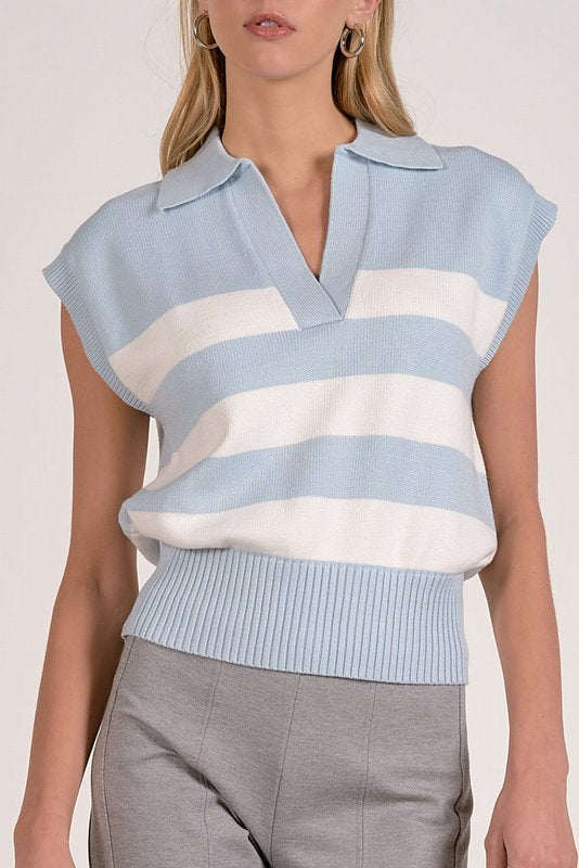 A polished pullover with a sporty edge. The Porter sweater blends a wide ribbed hem with a crisp collar and easy fit. Sleeveless and breathable, this spring staple adds preppy contrast to laid-back looks. Pair it with wide-leg pants or denim for an effortless update to your daytime uniform.