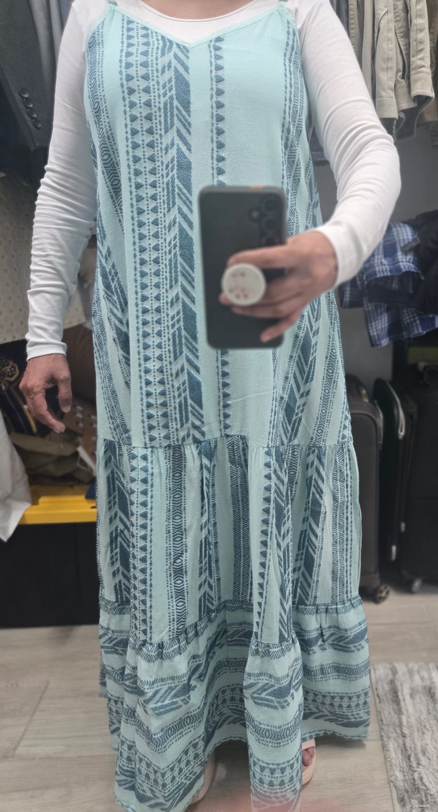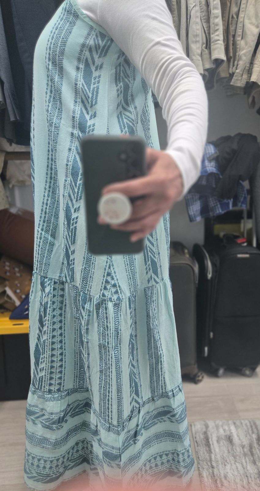 This dress hides it ALL and makes me look skiny. I LOVE IT. I did get a size medium and from the pix you can see it hangs pretty low to the ground even with the straps adjusted. But I like it because makes me feel girly and great! Also, I have bought other dress from this company and they sizes are pretty uniform across the board, even with their different styles. Hope this review helps someone!